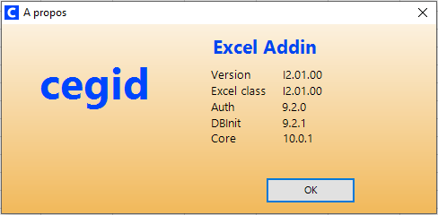 Le bouton "A propos" permet d'ouvrir une fenêtre d'informations à l'Excel Addin.
