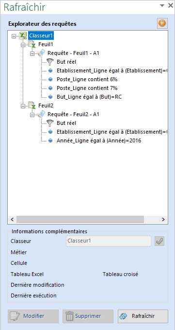 Rafraîchir la feuille permet d'actualiser l'ensemble des requêtes de la feuille courante.