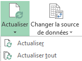 Seul le bouton "Rafraîchir" est accessible. Le rafraîchissement peut être demandé pour le classeur, une feuille ou une requête en fonction du positionnement.