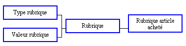 Informations des types de rubriques pour la rubrique associée aux articles achetés.