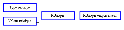 Informations : Numéro du type de rubrique, Mnémonique, Intitulé, Intitulé réduit, Indicateur de contrôle d'existence de la valeur saisie, Indicateur de contrôle du format de la valeur saisie, Indicateur de génération, Indicateur de valeur modifiable, Indicateur d'anomalie bloquante, Format de la valeur, Indicateur d'une seule valeur par entité.