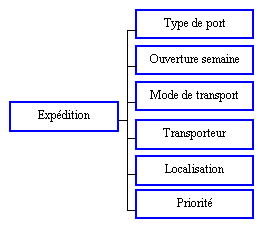 Informations : Mnémonique, Client, Tiers, Adresse, Date d'expédition reçue (année, trimestre, mois et date), Type de port (Intitulés), Ordre de chargement, Interlocuteurs externe et logistique, Ouverture semaine (Intitulés), Mode de transport (Intitulés), Destination, Transporteur (Intitulés et localisation), Priorité (Intitulés).