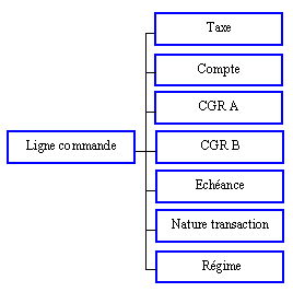 Informations : Compte (Intitulés), Poste (Intitulés), CGR 1 et 2 (Intitulés), Code douanier, Port frontière, TVA (Intitulés et taux), Nature de transaction (Intitulés), Régime (Intitulés), Echéance (Intitulés).