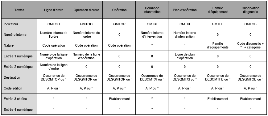 Zone permettant de spécifier les textes liés aux occurrences définies par le client dans le paramètre DESQMxxx associé à la nature.