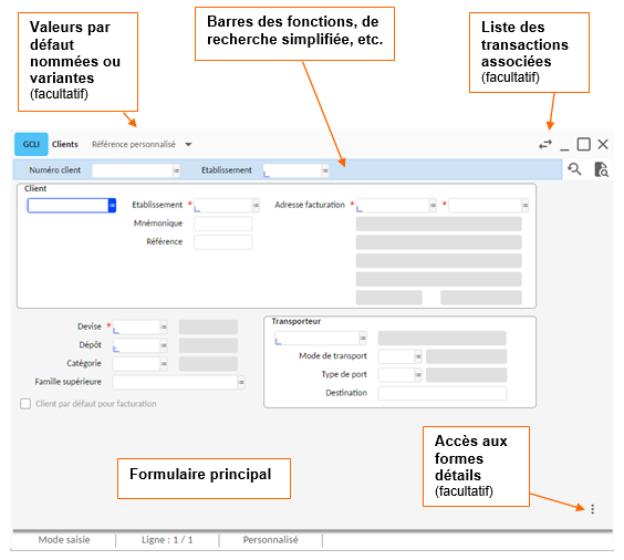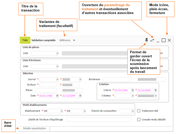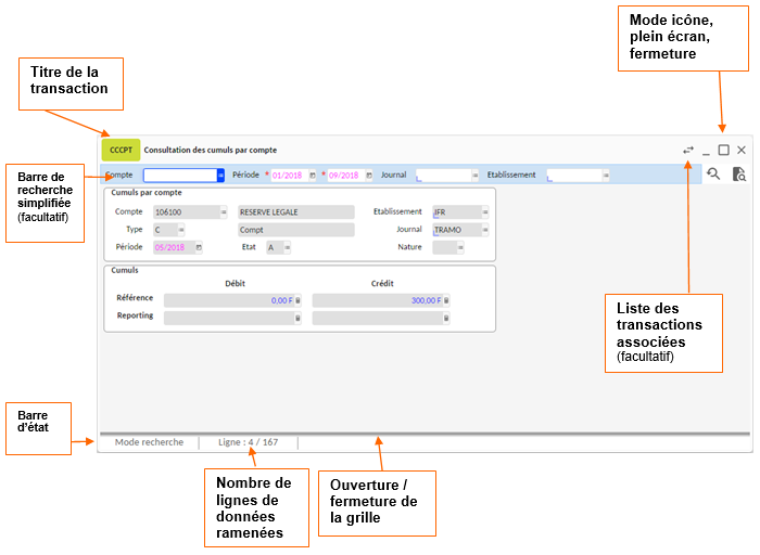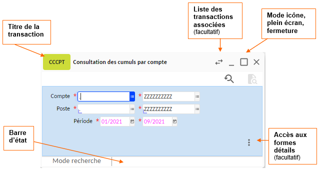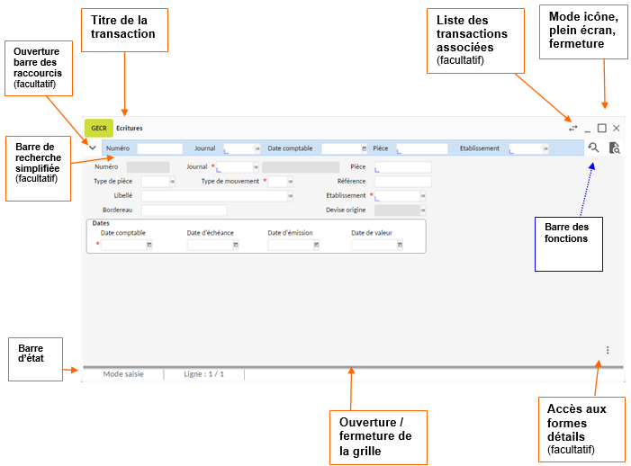 Une fois ouverts, tous les écrans des transactions peuvent être :