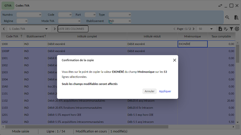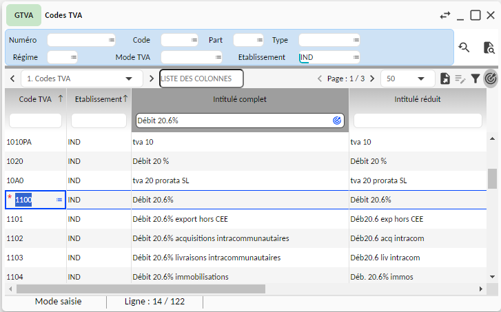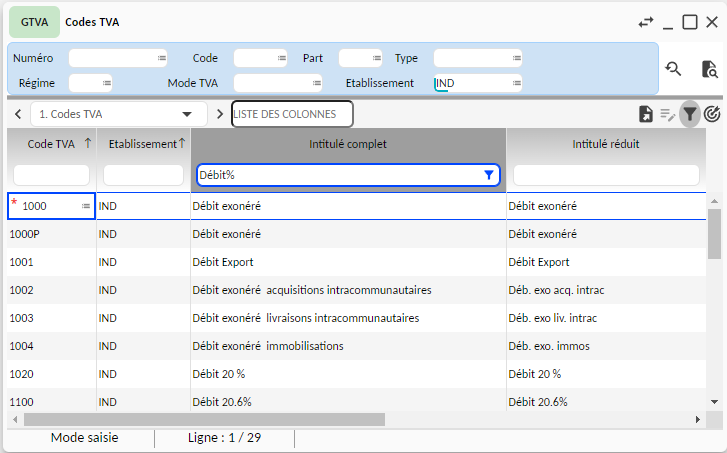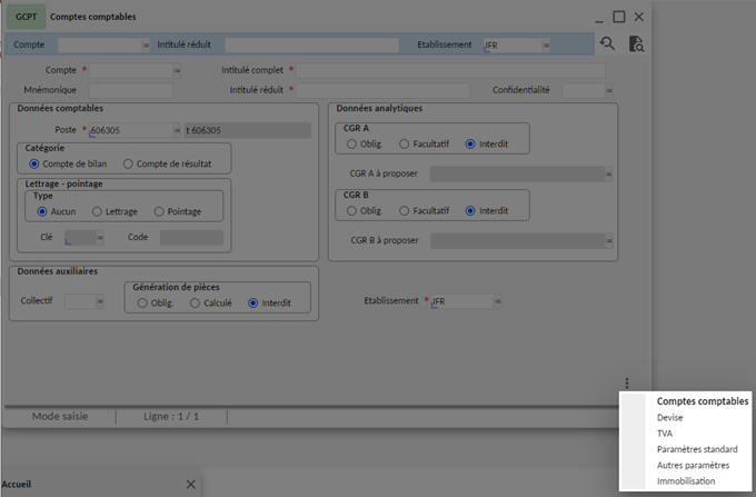 Note : si le mnémonique est précédé du préfixe "M :" (exemple "M:GPAR"), le mnémonique s'ouvre sans personnalisation, c'est-à-dire tel qu'il est livré en standard.