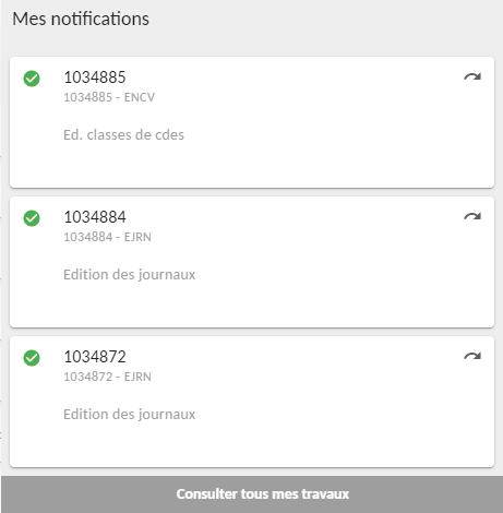 La fonctionnalité de notification peut être activée pour prévenir l'utilisateur lorsque les travaux qu'il a soumis se terminent.