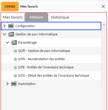 Si l'utilisateur ne possède pas de favoris, ce seront ceux de sa délégation (GDLU) par défaut qui s'afficheront.