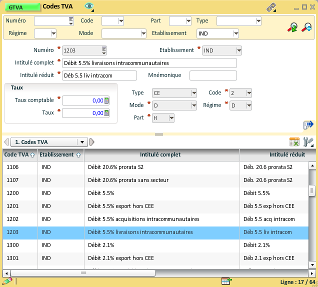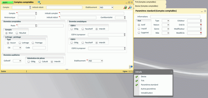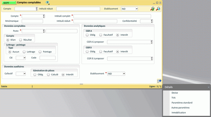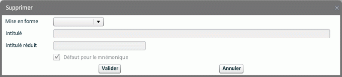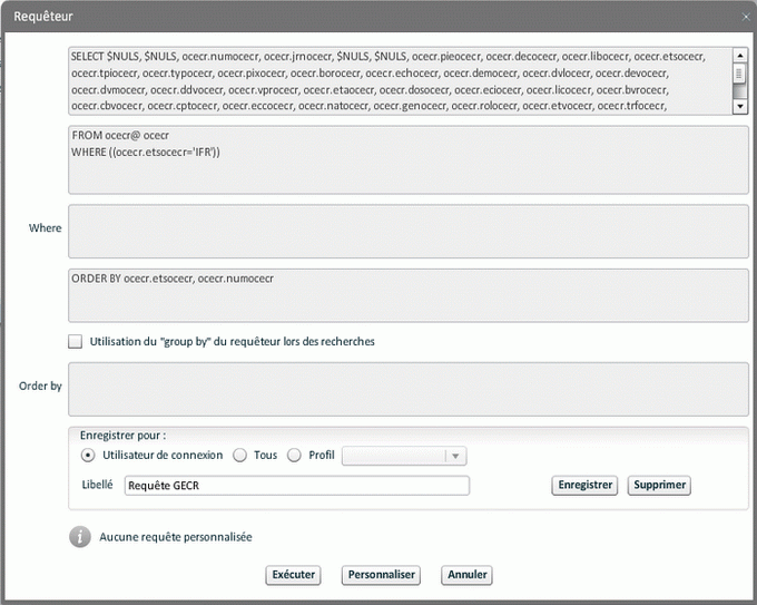 Une fois le mnémonique ouvert, la création ou la modification de la personnalisation n'est possible que si l'utilisateur connecté a le "Droit de personnalisation pour un autre utilisateur" ou le "Droit de personnalisation pour un autre profil" dans GUDR.