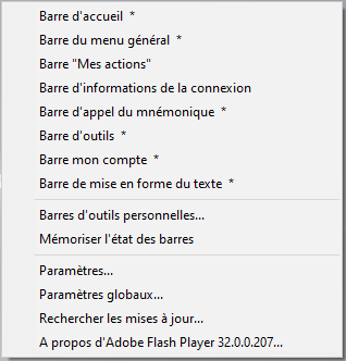Par défaut, dans l'interface, la barre s'affiche en dessous des autres. Elle peut être déplacée. Pour sauvegarder son emplacement, cliquer sur "Mémoriser l'état des barres" en faisant "clic droit" sur la page principale.