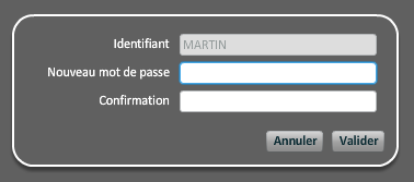 Après avoir saisi son mot de passe actuel dans la fenêtre de connexion, cette option ouvre une nouvelle fenêtre permettant de changer son mot de passe.