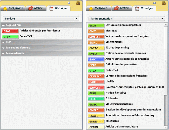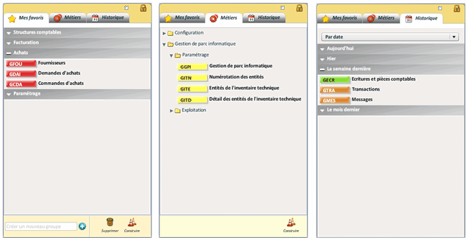 L'utilisateur peut afficher sa(ses) propre(s) barre(s) avec les icônes voulues à l'emplacement qu'il souhaite. Pour cela, il doit bénéficier des droits de "Configuration du client" dans GUDR.