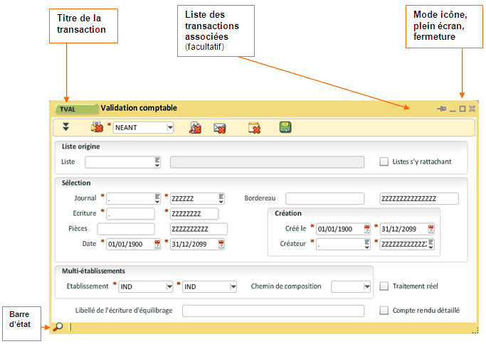L'ouverture automatique d'une transaction dans l'interface utilisateur depuis une adresse Internet (URL) est de la forme suivante :