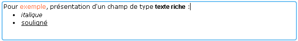 Lorsque le mode est actif, la présence d'une aide personnalisée sur un champ se caractérise par un signe en haut à gauche du champ.
