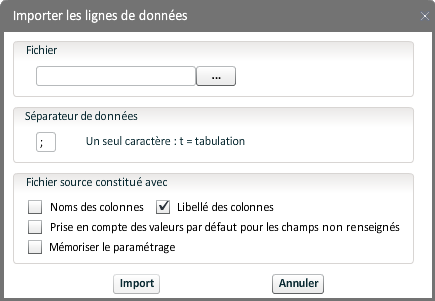 Choix de l'environnement (ou descriptif du serveur de données)