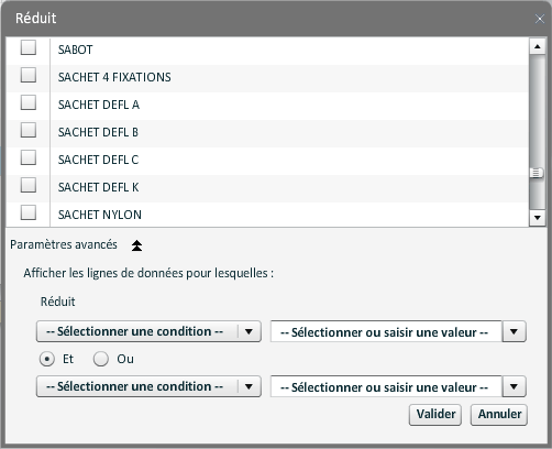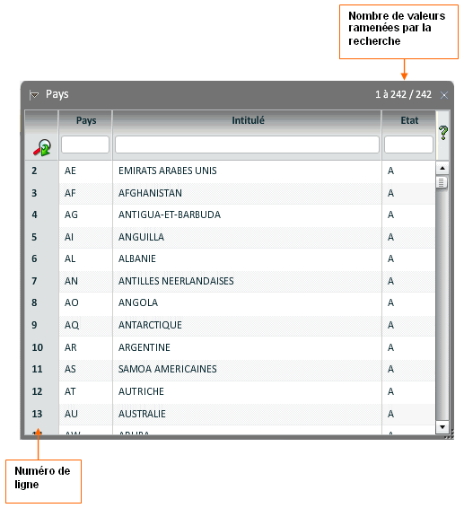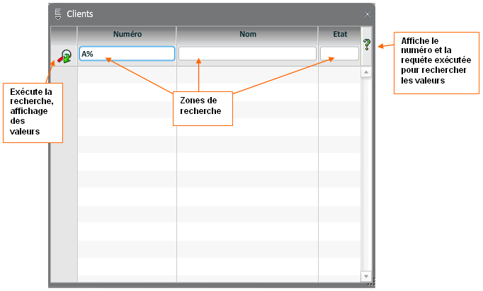 Valeurs des champs du formulaire (recherche, critères et sélection)