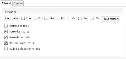 Il est aussi possible de sauvegarder les paramètres du calendrier. Les paramètres du calendrier sont obtenus en cliquant sur l'icône