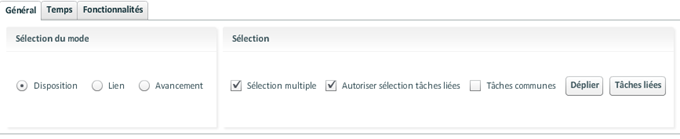 Il est aussi possible de sauvegarder les paramètres du Gantt. Les paramètres du Gantt sont obtenus en cliquant sur l'icône