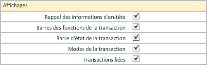 Ces options permettent aussi d'alléger les écrans en supprimant des éléments de la transaction si l'utilisateur n'en a pas l'utilité.