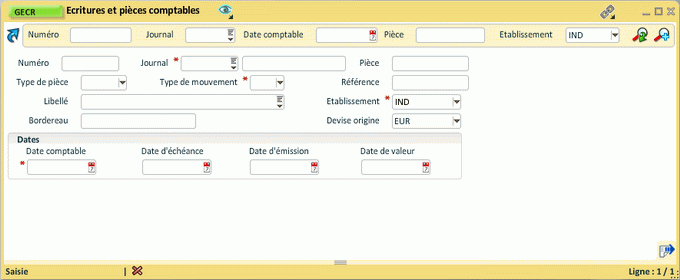 Par défaut, la transaction GECR se présente comme ceci :