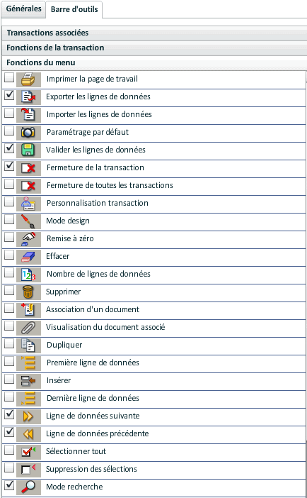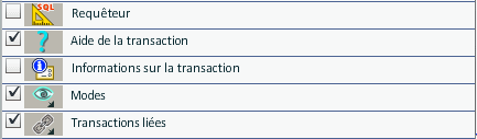 - des fonctions supplémentaires dans la barre d'outils (boutons, transactions appelées, etc.).