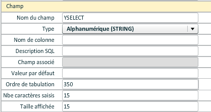 Remarque : pour définir les propriétés, il faut ajouter un champ de type alphanumérique dans la grille dont le descriptif contient la syntaxe des propriétés, sélectionner ce champ dans la liste et le faire glisser dans la caractéristique "Propriétés".