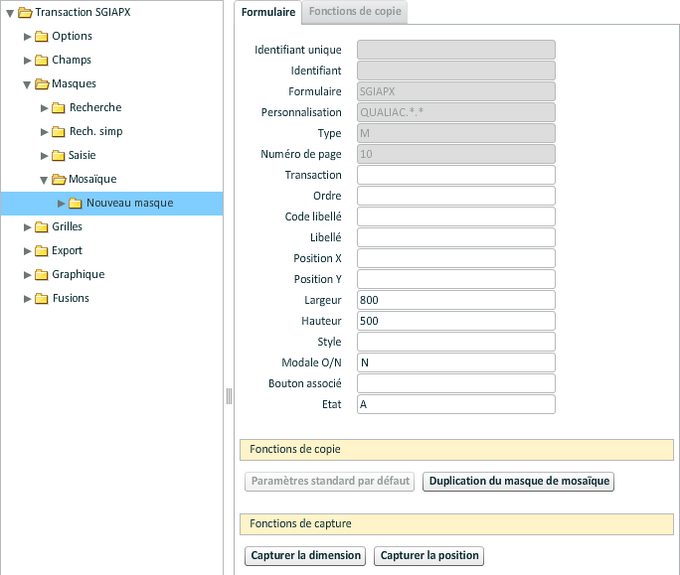 - Masques : personnalisation des masques de saisie, de recherche, de recherche simplifiée, etc.
