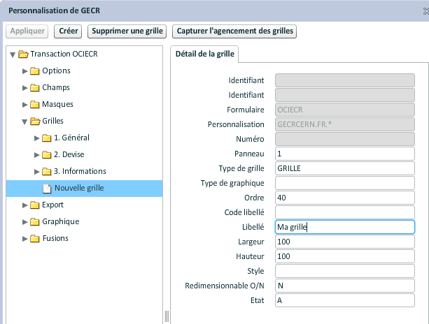 - Grilles : définition des champs en mode "Grille".