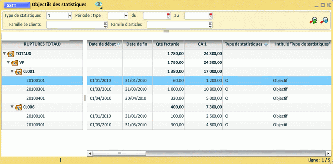 Il y a autant de jauges affichées que de lignes de données ramenées dans la grille de la transaction. Il n'est pas possible de regrouper les lignes de données afin de cumuler les jauges.