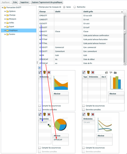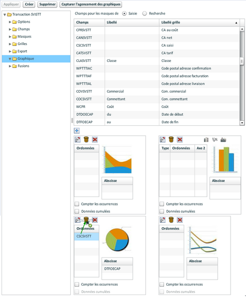 - Graphique : paramétrage de l'affichage de données sous forme de graphique.