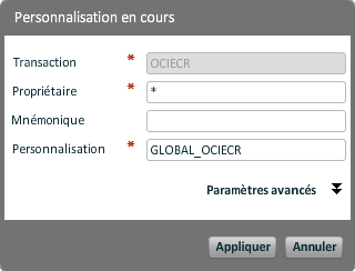 Il est donc possible de régler des personnalisations complètement différentes pour une même transaction mais utilisée dans des contextes différents.