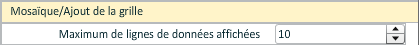 Le nombre maximal de lignes de données affichées est le nombre de mosaïques affichées par série. Il s'agit également du nombre de lignes affichées lorsque la grille est ajoutée via le bouton de la barre d'état de la transaction (icône