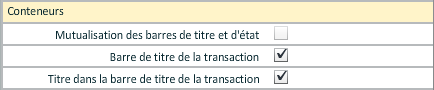 En cochant "Mutualisation des barres de titre et d'état", l'ergonomie du conteneur est modifiée et ressemble à celle d'une transaction "autonome" :