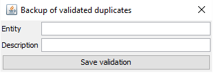Lorsque tous les doublons sont validés par l'utilisateur, il faut sauvegarder le résultat via le bouton "Save validation".