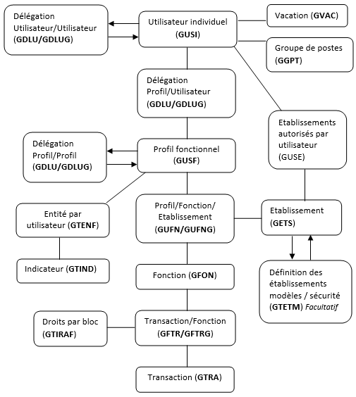 Ces associations se faisant par établissement, l'utilisateur peut posséder des fonctions différentes selon l'établissement : il réalise alors des tâches diverses selon l'entité.