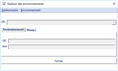 Sinon, si on utilise directement l'exécutable, il est obligatoire de paramétrer l'outil pour définir le ou les environnements que l'on souhaite utiliser. Si aucun environnement n'est sauvegardé, à chaque ouverture, l'outil demande de définir un environnement.