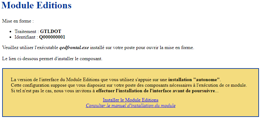 Le Module Editions nécessite une installation de l'outil sur un poste (centralisé ou local), pour qu'il puisse être lancé via un protocole ou via un exécutable.