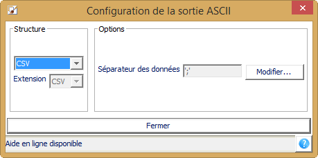 Il est possible de modifier le séparateur de données, dans l'écran de configuration de la sortie ASCII.