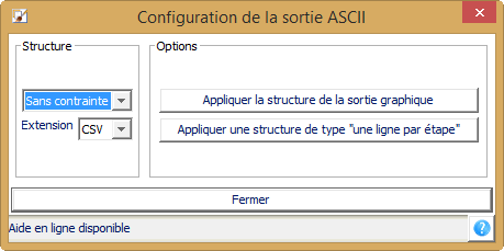 Si cette sortie est sélectionnée, l'affichage de la sortie ASCII se fait via un assistant.