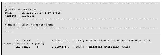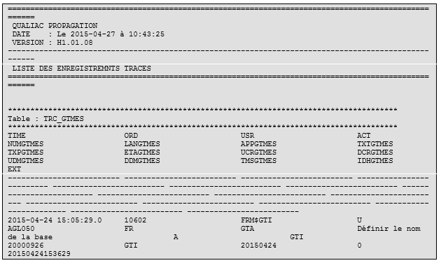 - "Liste des enreg. tracés" détaille toutes les modifications table par table ;