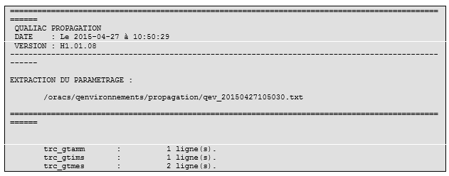 Dans GENVP, pour la liste EXTRACT saisie dans GMIELT, l'action "Extraction" extrait sur le serveur de traitements tout le paramétrage dans le fichier $IAC_HOME/qenvironnements/propagation/qen_YYYYMMDDhhmmss.txt.