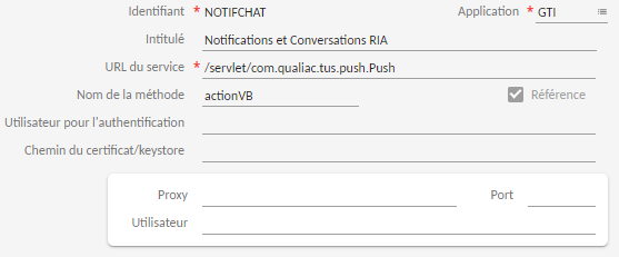 Le WebService NOTIFCHAT pointe sur la méthode "actionVB".