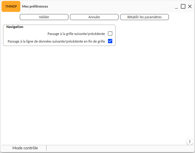 Ce bouton permet d'ignorer le paramétrage saisi.