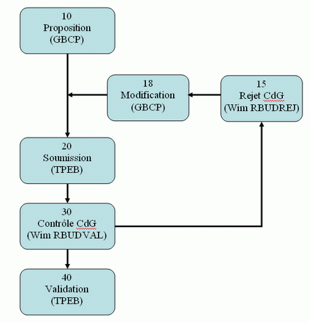 Comme pour les commandes d'achats ou de ventes, il est possible de gérer des processus pour les lignes budgétaires afin de leur faire suivre un circuit d'information défini.