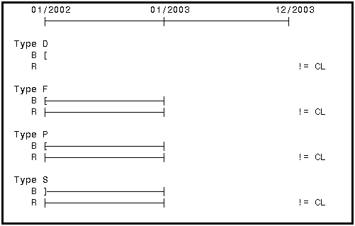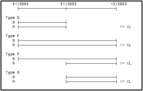 Tableau schématisant pour 2 cas précis, les périodes que les divers plans suivant leurs types respectifs exploiteront dans les cumuls.
