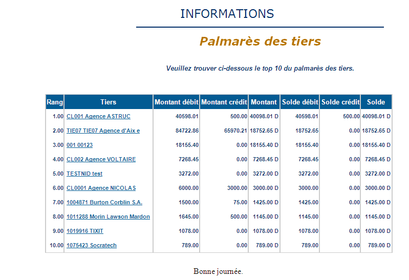 Le nombre de tiers extrait est paramétrable, on peut ainsi avoir un top 10, un top 50, etc.