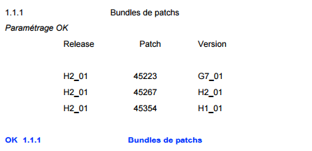 - la liste des patchs non encore installés et nécessaires. Quand cette liste est vide, c'est que tous les patchs connus, jusqu'au numéro du dernier de la version sont installés. Le chapitre est alors considéré comme correct vis-à-vis du contrôle ;