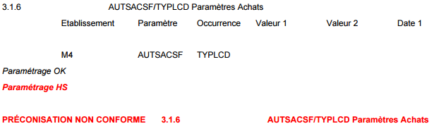 3.1.6 AUTSACSF/TYPLCD Paramètres Achats
