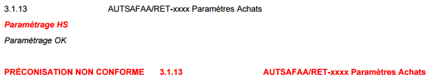 3.1.13 AUTSAFAA/RET-xxxx Paramètres Achats