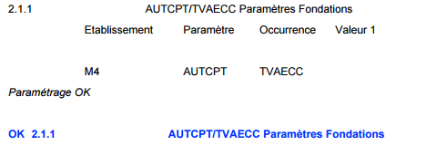 L'occurrence TVAECC du paramètre AUTCPT doit avoir "A" dans sa valeur testée 1.